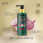Red Onion Hair Oil: An authentic and soothing blend fortified with nurturing traits of Red Onion oil. It is a treat to dull and damaging hair, stimulating blood flow and regenerating hair follicles to accelerate hair growth.