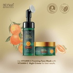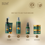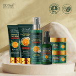 The power treat of this in need of VITAMIN C routine is loaded with the powerful antioxidants that helps fight skin damage ,protects skin from harsh environmental stress and stimulates the production of collagen in the skin .From cleaning to mloisturising the package is loaded with Vitamin C and other natuarally extracted ingredients that repairs damaged skin cells,prevents pre mature aging and provides skin structural support. The complete skin regime as cleaning face in the morning with Vitmin C Face wash followed by serum and applying daycream that protects and prevents skin from environmental stress and harsh sun rays. Feel fresh and hydrated with our 2 in 1 vit c face toner and mist which can be sprinkled throughout the day on face and can also be used as toner before Following the same routine the evening after a busy day finished by applying night cream that restores,regenerate and radiate skin while u sleep. For that extra glow Vit C mask with plant based scrubbeads can be used once in a week for clean and happy complexion.