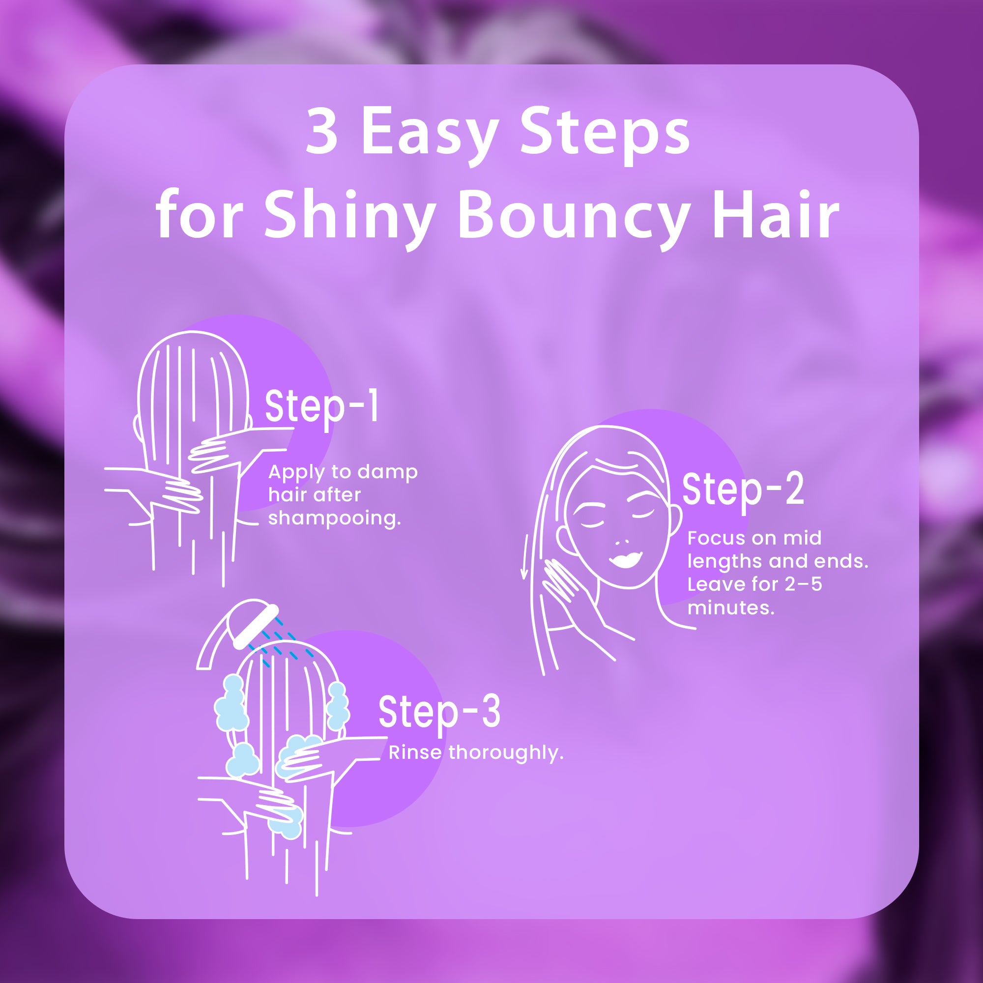 - Step-1- • Apply to damp hair after shampooing.